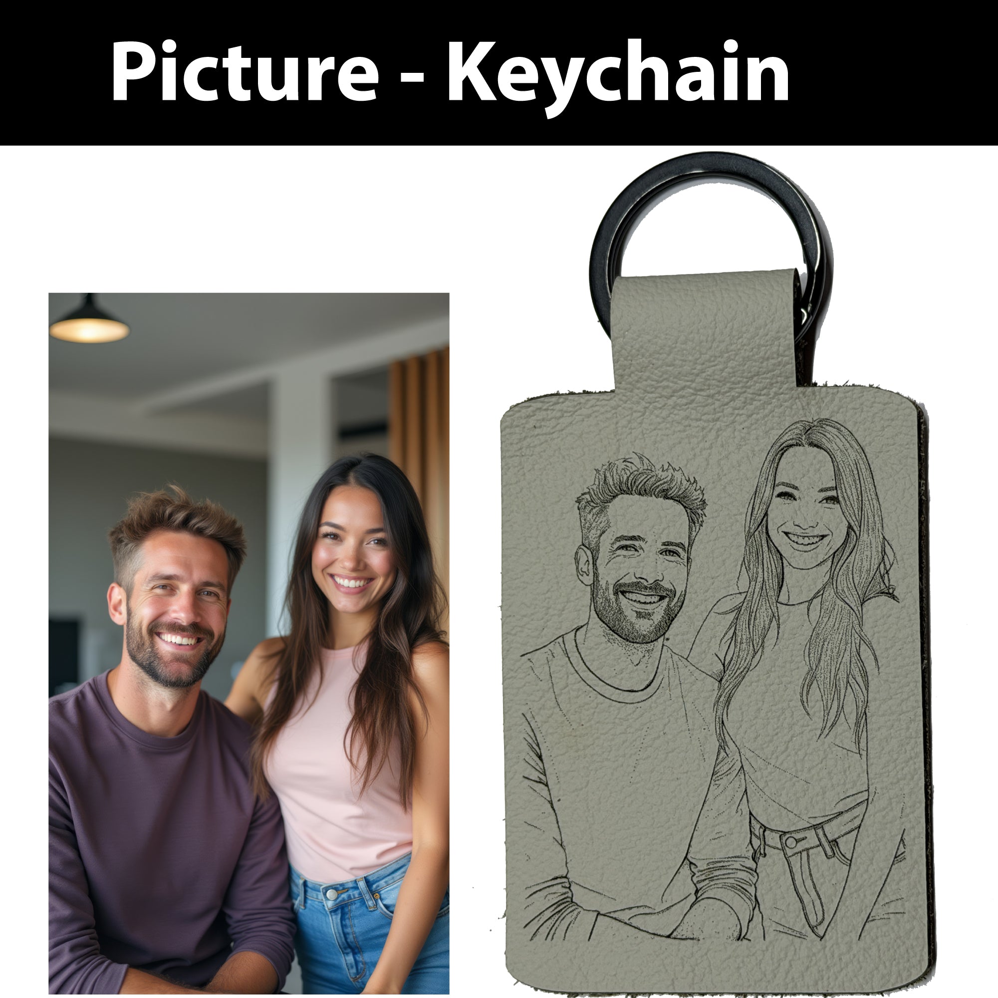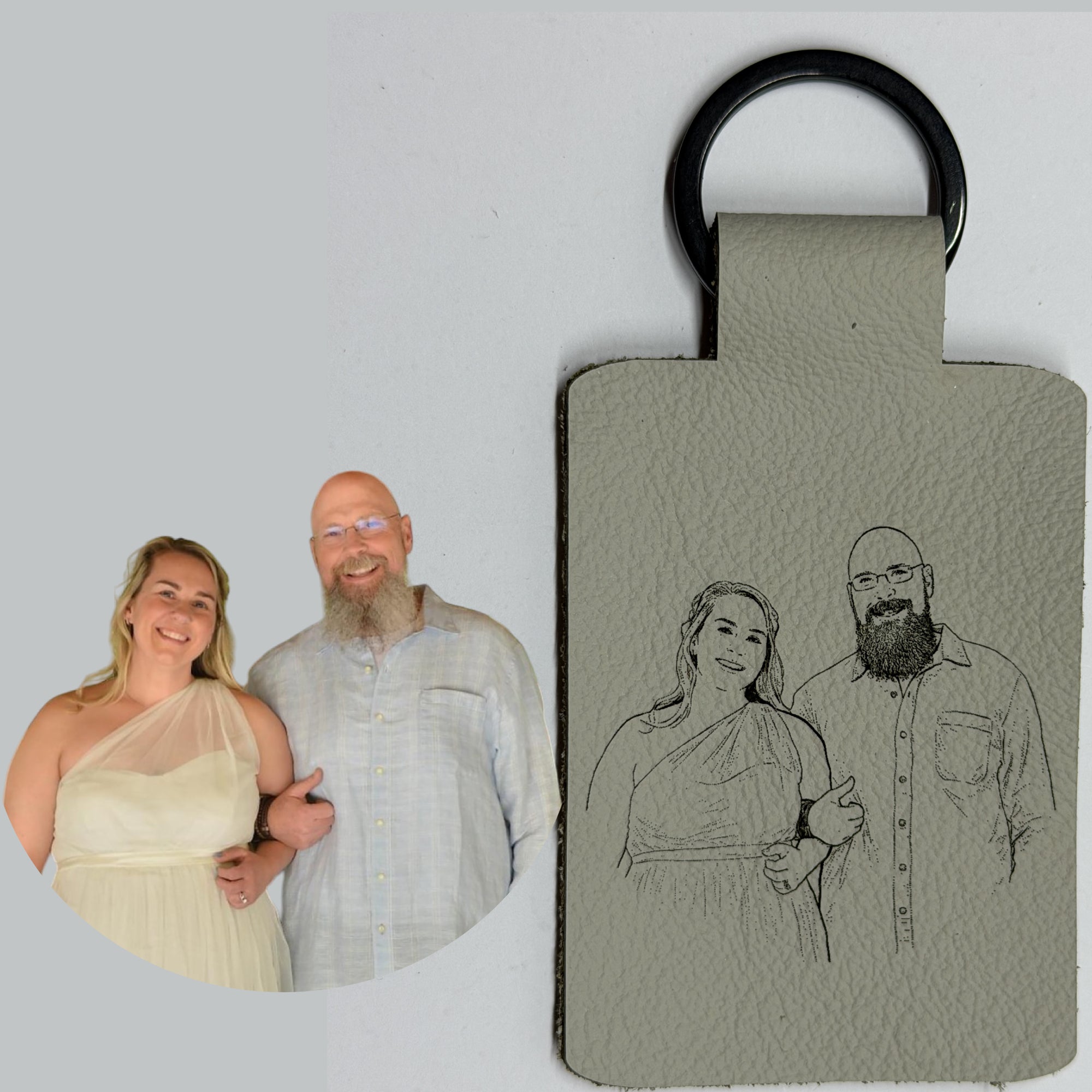 Engrave: We laser-etch the design into genuine 1/8" thick leather and finish it with a heavy-duty black stainless steel ring.