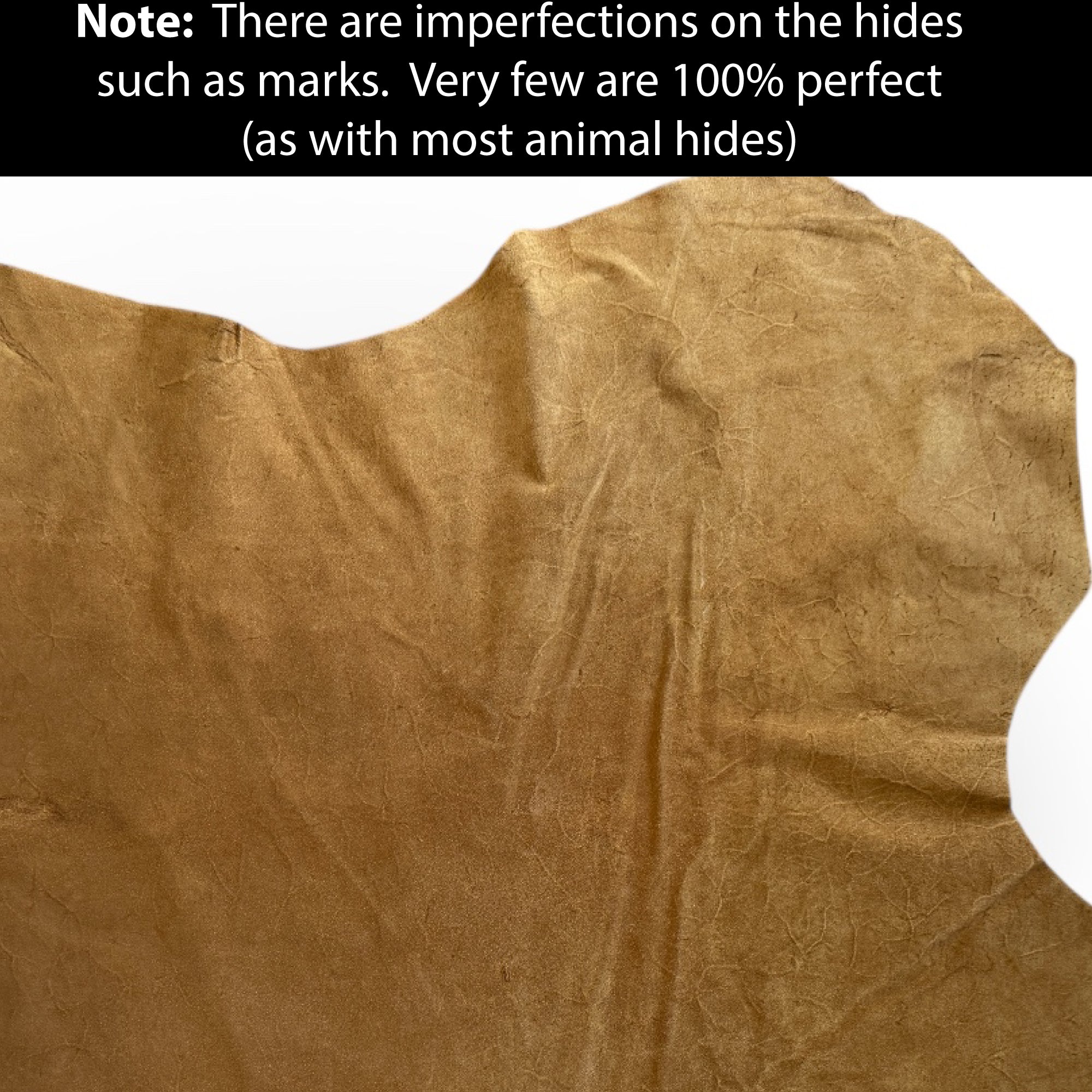 These suede full cowhides are soft, durable, and versatile, perfect for a variety of crafting and upholstery projects. Each hide measures approximately 3 feet x 3 feet to 4 feet x 4 feet, offering between 10 to 15 square feet of material. With a thickness of 8 - 9 oz (approximately 1/8 inch), these hides are both sturdy and flexible, making them ideal for diverse applications.